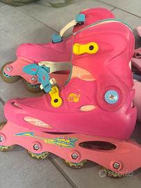 Vendo pattini in linea numero 36 della decathlon con protezioni ginocchia gomiti e polsi.
