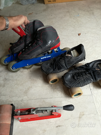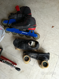 Pattini in linea professionali da gara o da passeggio nuovissimi. Gomme in silocone professionali. Attualmente è presente nella scarpa del nastro protettivo rimovibile antigraffi ( come da foto). Si ha la possibilità di cambiare anche la scarpa qualora il piede abbia una misura diversa. Pattini a rotelle come da foto. Misura calzature 37/39. Prezzo trattabile. Contattatemi per qualsiasi informazione.