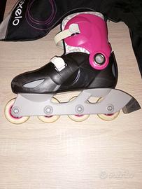 Pattini e accessori tutto Decathlon: pattini mis. 34-35 completi di sacca per il trasporto; casco skate mis. 48-52 cm ; protezioni ginocchia, gomiti, polsi per bambini fino a 10 anni circa. Tutto in ottime condizioni.