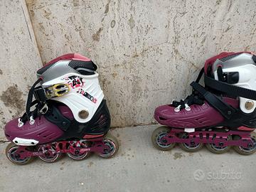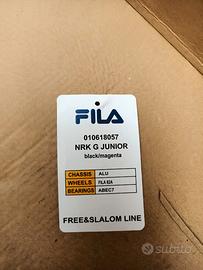 Pattini in linea originali FILA NRK G Junior, taglia 36-39 (pattini estensibili), in buono stato idonei per il freeskating , specifiche tecniche chassis in alluminio, ruote Fila 82A, cuscinetti con indice di scorrevolezza ABEC 7 , in vendita ad € 30 per info contattare il 3470975692
