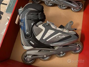 Vendo pattini in linea Fila mod. Helix, numero 41, con freno posteriore + protezioni complete (polsiere, gomitiere e ginocchiere), tutto in ottime condizioni, usato pochissimo, scatola originale