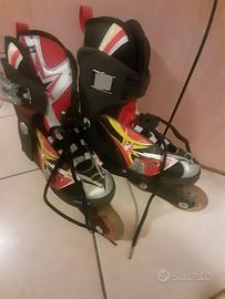 Vendo pattini in linea per bambino, marca Roces, modello unisex. Colore nero giallo bianco e rosso. Misura adattabile dal numero 30 al numero 35, quindi utilizzabili per più anni. Usati veramente poco