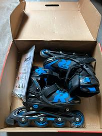 Splendidi pattini in linea colore nero e blu in ottime condizioni chiusura a tre ganci possono essere utilizzati dal nr 34 al nr 37 . Provati una sola volta.