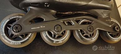 Vendo pattini in linea marca Oxelo (distribuiti da Decathlon), ideali per il fitness e il pattinaggio amatoriale. I pattini sono robusti e offrono un'ottima scorrevolezza grazie alla componentistica di qualità. Taglia: EU 39 (adatti anche per 38/38.5 consultando la misura interna di 24.5 cm). Ruote: Oxelo da 76 Chiusura: Sistema combinato con lacci, strap a strappo e leva superiore per la massima stabilità della caviglia.