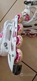 per passaggio a numero più grande vendo pattini in linea Roces da bambina. Taglia regolabile 30-33. Qualche graffio dovuto a qualche caduta per imparare. Nel prezzo anche il caschetto.