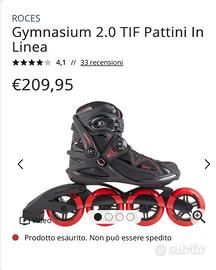 Vendo come da titolo pattini in linea della Roces modello Gymnasium 2.0 TIF. Taglia 43. Praticamente nuovi, mai usati. Qualsisi info chiedete pure.