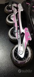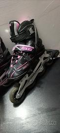 Vendo pattini in Linea della Roces rosae neri, in buono stato, presentano alcuni graffi come mostrato nelle foto, ottimi come prima esperienza, rotelle e freno in buono stato, doppia chiusura.