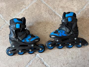 Vendo bellissimi pattini in linea (rollerblade) della ROCES, modello regolabile che copre le taglie dal 26 al 29. I pattini sono in ottime condizioni, usati pochissimo e perfettamente funzionanti (come si può vedere dalle ruote quasi nuove). Ideali per i primi passi sui pattini grazie alla qualità e al sostegno della marca Roces.