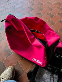 Roller. Pattini in linea. Regolabili. Taglia 39. Da donna. Modello Fila. Accessori come borsa Oxelo. Protezione per polsi. Ginocchiere taglia S.. Casco.