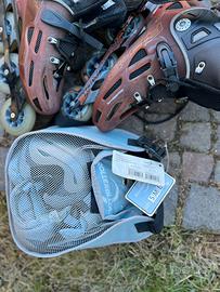 Pattini in linea taglia 44 usati una sola volta con set di para ginocchia e gomiti