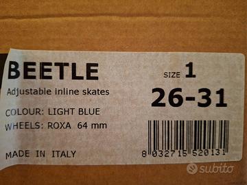 Pattini in linea Roxa regolabili in lunghezza taglia 26-31. Colore AZZURRO. Usati pochissimo