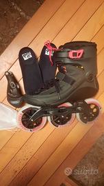 Come da titolo, per misura errata (Misura 45) cedo pattini in linea della Tedesca Powerslide modello swell stellar city 125 ideale per lunghe distanze.Massimo comfort con l'imbottitura 3D Adapt YFIT 3D..FRAM in magnesium montaggio TRINITY.Ruote undercover 125mm / 85 A ultra high Rebound.Cuscinetti Wicked ABEC9 +freno in dotazione da montare.prezzo poco trattabile.