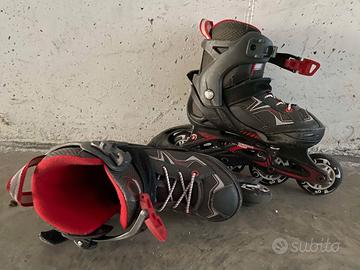 Pattini in linea tipo Roller Blade marca Oxelo-Oxylane, rossi e neri, belli e perfettamente funzionanti.