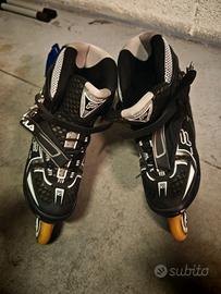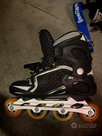 Vendo per inutilizzo pattini in linea della fila taglia 46. Usati veramente poco. A chi li acquista regalo protezioni in foto.