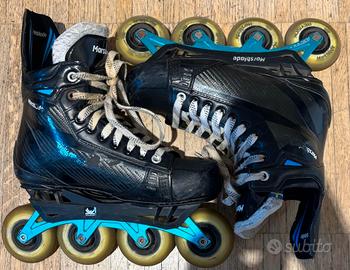Stupendi pattini marsblade r1 per hockey inline. completi di scatola originale n. 6.5 o us 8 o eu 41 (vedi foto). Usati mezza stagione completi di “with all 4 radius inserts for the rocker technology and original wheels”,per regolare la reattività “flow motion techology”for responsiveness and sensibility. Come nuovi. 300 euro trattabili. Zona Eur. Roma #ccm#bauer#hockey#marsblade#warrior