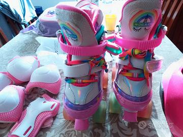 Pattini non in linea per bambini taglia 30 - 33 + protezioni (ginocchiere, gomitiere e polsiere) + casco btwin