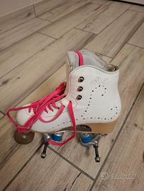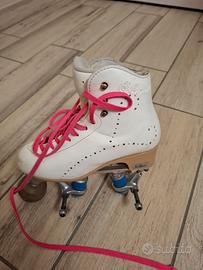 Vendo pattini da avviamento con stivaletto Belati Primula numero 33 e piastra Roller numero 12. Lo stivaletto è perfetto esternamente, ma un po' consumato all'interno e occorrerebbe farlo sistemare da un calzolaio con la spesa di 10/15 euro. La piastra è in ottime condizioni.