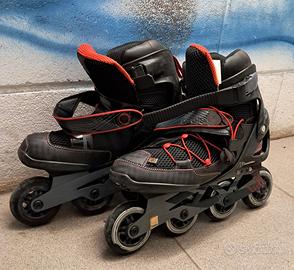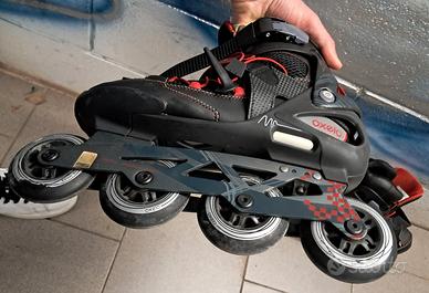 Pattini inline Oxelo NUOVI in colore nero con dettagli in rosso. Hanno un sistema di chiusura con velcro e lacci. Ruote da 84 mm. Taglia 44. Marca Oxelo. ritiro a Paderno Dugnano zona Mornati