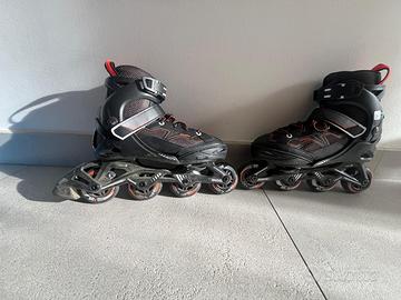 Come da oggetto, vendo pattini roller a 4 ruote in linea con freno di Dechatlon, in buone condizioni. Misure: 35 – 38 (adattabile). Regalo protezioni ginocchia – gomiti – polsi come da foto