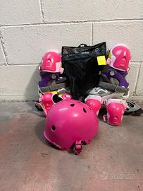 Incluso nel prezzo anche il set completo di protezioni Oxelo Kids taglia 2XS (ginocchiere, gomitiere, polsiere,casco).