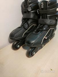 Utilizzati poche volte, presentano uno strappetto sul pattino sinistro, per il resto sono in buonissime condizioni. Rotelle scorrevoli e in ottimo stato.