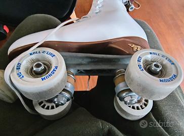 Vendo pattini a rotelle per pattinaggio artistico, bianchi, in buone condizioni.