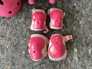 Pattini a quattro rotelle con ginocchiere,gomitiere e casco. Taglia 37 ma veste stretto