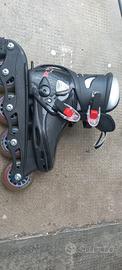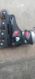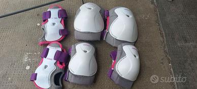 Vendo pattini per bambini usati con protezioni per ginocchia, gomiti e mani. La taglia è adattabile dal n. 32 al n. 36. Compresa borsa per il trasporto.
