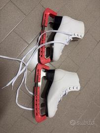 Vendo coppia di pattini per il ghiaccio, mai usati e compresa la borsa. I bianchi sono nr 35 e i neri sono nr 33