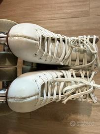 Pattini pre agonismo stivaletto marca RISPORT VENUS 230 montata su Piastra Roller Senior 13, freni ambra, cuscinetti ABEC 3. Vendo per passaggio a numero superiore. In ottime condizioni, usati sempre con copripattini sopra. C' e' da cambiare solo le ruote. Prezzo leggermete trattabile . Consegna a mano siena e dintorni.