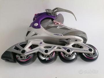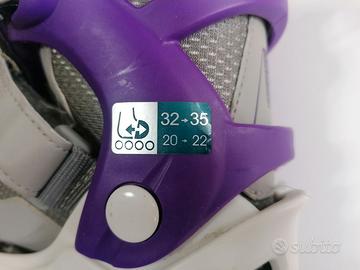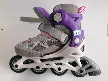 Pattini in linea regolabili dalla taglia 32 a 35 per un peso massimo di 60 kg. Completi di istruzioni