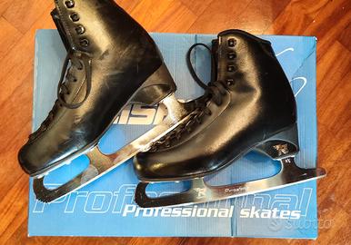 Pattini per pattinaggio su ghiaccio modello Risport Antares Man misura 245 completi di lame, colore nero. Usati pochissimo e in ottime condizioni, vendo per cambio misura.