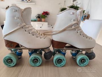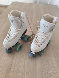 Vendo Risport Venus allestiti con pattini per pattinaggio artistico, usati pochissimo. La taglia è 215, pari ad un 32, tuttavia al momento hanno una soletta (facilmente rimovibile) che li rende usabili anche per chi ha il 31.
