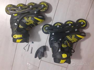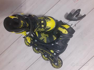 Pattini in linea (tipo rollerblade) per bambini roces misura variabile da 30 a 33, praticamente nuovi, scatola originale con tutti gli accessori.