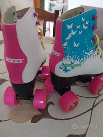 Vendo pattini Roces mod. le player n° 34, usati una volta soltanto in pista, vendo per cambio numero da calzare. nuovissime, vedi foto. Piccolissima imperfezione quasi invisibile sulla punta di una scarpa dovuta ad una frenata fatta male (vedi foto). Tutto nella sua confezione originale.