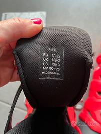 Misure 30/35 grazie al sistema di allungamento della scarpa, girando la leva sulle 4 misure si strige o allunga la pianta del piede. Vedi foto del retro.