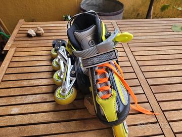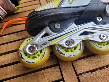 Pattini roller di Sport Specialist, taglia 29-32. Usato, ma molto ben tenuto. Ruote in gomma (no plastica) e tripla chiusura per l'ottimale tenuta del piede del bimbo.