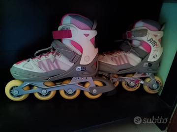 USATI POCHISSIMO QUALCHE GIRO POI SONO STATI SEMPRE FERMI VANNO DAL NUMERO 38 AL 41 PREZZO CONVENIENTE SONO PATTINI SIA PER BAMBINI CHE PER ADULTI