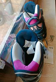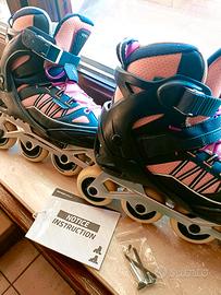 Come nuovi, usati 3/4 volte vendo pattini roller colore blu/rosa marca decathlon modello Oxelo con libretto istruzioni e chiavi smontaggio e viti di ricambio. Perfetti, Un roller resistente e comodo, per perfezionare la tecnica. Il compagno giusto per imparare e fare dei lunghi giri! Adatto dai 10 ai 90 anni. Omologati fino a 100 kg di peso. Prezzo in negozio 59,99 vendo a 25 euro. Possibile ritiro a mano o spedizione.