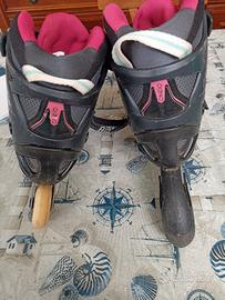 PATTINI ROLLER OXELO USATI MA IN OTTIME CONDIZIONI, TG 38/41 NERI + CASCO OXELO MISURA 55/58 CM, E PROTEZIONI (manigliere, ginocchiere e gomitiere) USATE MA IN BUONISSIMO STATO