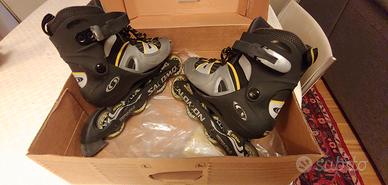 Vendo pattini in linea Salomon usati assai poco, cm 21-24, vestono taglie da 33 2/3. a 38, ruote in buone condizioni e scorrevolissime.