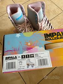 vendo come da titolo pattini originali marca Impala, MAI utilizzati come si pio evincere dalla foto. Numero 39EU Women. Colore Smokey Grey. Modello RollerSkate 4 ruote. Pattini professionali. Ricevuti in regalo. Con scatola. No perditempo o scambi. Solo proposte da chi è realmente interessato.
