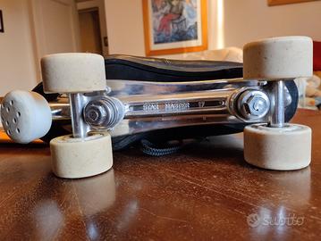 vendo pattini a rotelle uomo mis 44/45 marca Star Master 17 Boiani Sport Italy B, scarpa in pelle bianca e nera, ruote Star Cs 40 con cuscinetti