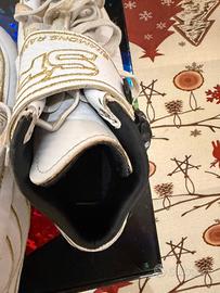 In vendita Simmons Rana White Gold, modello di livello professionale, ideale per pattinatori intermedi e avanzati. Stivaletto progettato per offrire ottimo supporto alla caviglia, stabilità e precisione, con un design elegante in bianco con dettagli oro.