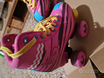 Indossa ed impara a pattinare con gli originali pattini utilizzati da Soy Luna nella serie televisiva: prodotto ufficiale, con colorazioni e dettagli curati in ogni minimo particolare. Articolo realizzato con materiali e componenti adatti per l'allenamento. Il freno anteriore è studiato con un particolare sistema di grip che permette di utilizzare i pattini in tutta sicurezza sia in ambienti interni (con superfici lisce) che in ambienti esterni (con superfici ruvide). Le ruote, dal diametro di 52 mm, sono realizzate in PVC. La speciale imbottitura interna rende la scarpa confortevole e facile da indossare. Taglia:36/37. La produzione e lo sviluppo dell'articolo è realizzato da Roces, per Giochi Preziosi.