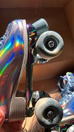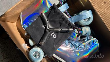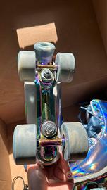 Pattini quad Story Glacier in taglia 38. Usato solo 2 volte, praticamente nuovo. Inclusi set protezioni e chiave multifunzione. - Modello Glacier, colore Laser Blue - Diametro della ruota 58 mm, durezza 82A - Lame in alluminio resistente - Calzatura a guscio morbido e tallone rialzato INCLUSO: - Set protezione NKX Pro: Ginocchiere, Gomitiere e Protezioni polso, misura M; - Chiave multifunzione 5 in 1 per ruote, cuscinetti e freni di roller e monopattini