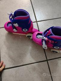 pattini con due ruote allineate colore rosa in ottime condizioni.