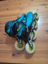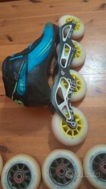 Vendo pattini bont n. 36 con qualche segno di usura esterno con piastra dove vanno bene sia ruote da 90 che da 100 e ruote black magic xx da 90 buone per allenarsi e ruote idrogen pro da 90 in buone condizioni. 300€ pattini e entrambe le ruote