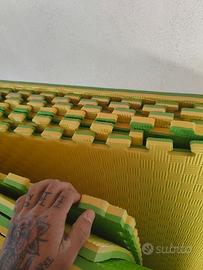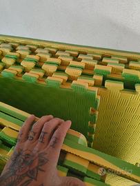 Vendo pavimento modulare da palestra in materiale EVA ad alta densità, ideale per home gym, personal training, arti marziali o area fitness. Superficie totale: 14 mq Dimensioni singolo pannello: 100 x 100 cm Spessore: 2 cm Materiale: EVA antitrauma Colori: verde/giallo Sistema ad incastro, facile da montare e smontare Buon assorbimento urti e protezione pavimento Condizioni buone, utilizzato in ambiente indoor. Perfetto per: home gym sala pesi allenamento funzionale zona kettlebell / corpo libero