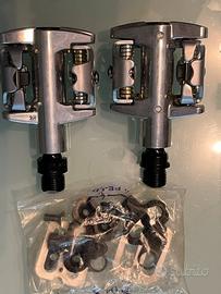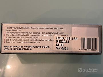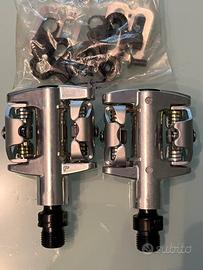 Vendo coppia pedali SPD nuovi per biciclette Mountain Bike marca VP con codice VPM31 di colore cromato con lunghezza 95 mm e larghezza 54 mm